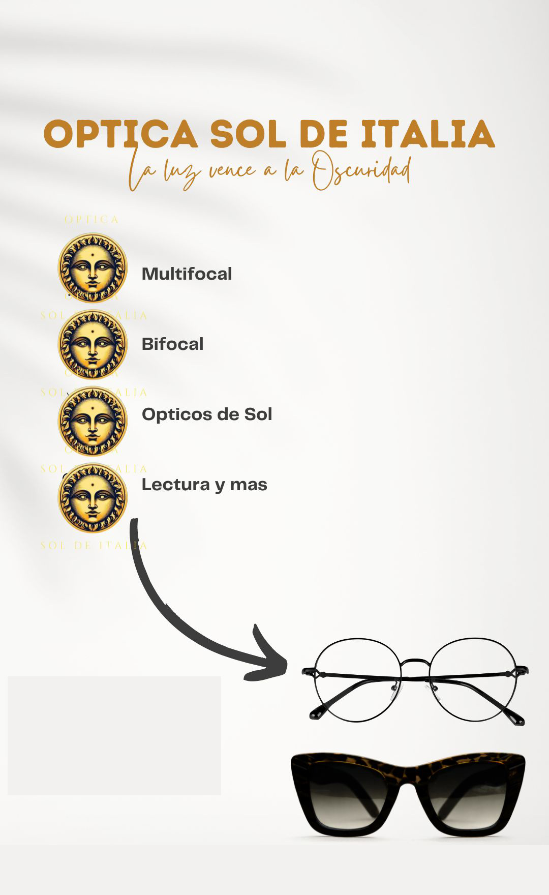 En Óptica Sol de Italia nos preocupamos tanto por la salud de tus ojos como por la estética de cada diseño, porque creemos que unos buenos anteojos no solo mejoran tu visión, sino que también realzan tu estilo y personalidad.